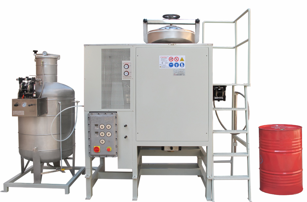 ④在分離回收過程結(jié)束后,可利用真空減壓裝置的排料功能,將剩余純凈藥水液體排到所需的容器中。待回收機(jī)降溫時,再打開桶蓋,將回收機(jī)傾倒,將內(nèi)部的藥水液體倒出并清理干凈。如剩余藥水液體混雜粉塵、油泥較多時,可采用物理方式過濾去除。