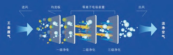 在外加電場(chǎng)的作用下,介質(zhì)放電產(chǎn)生的大量攜能電子轟擊污染物分子,使其電離、解離和激發(fā),然后便引發(fā)了一系列復(fù)雜的物理、化學(xué)反應(yīng),使復(fù)雜大分子污染物轉(zhuǎn)變?yōu)楹唵涡》肿影踩镔|(zhì),或使有毒有害物質(zhì)轉(zhuǎn)變成無毒無害或低毒低害的物質(zhì),從而使污染物得以降解去除