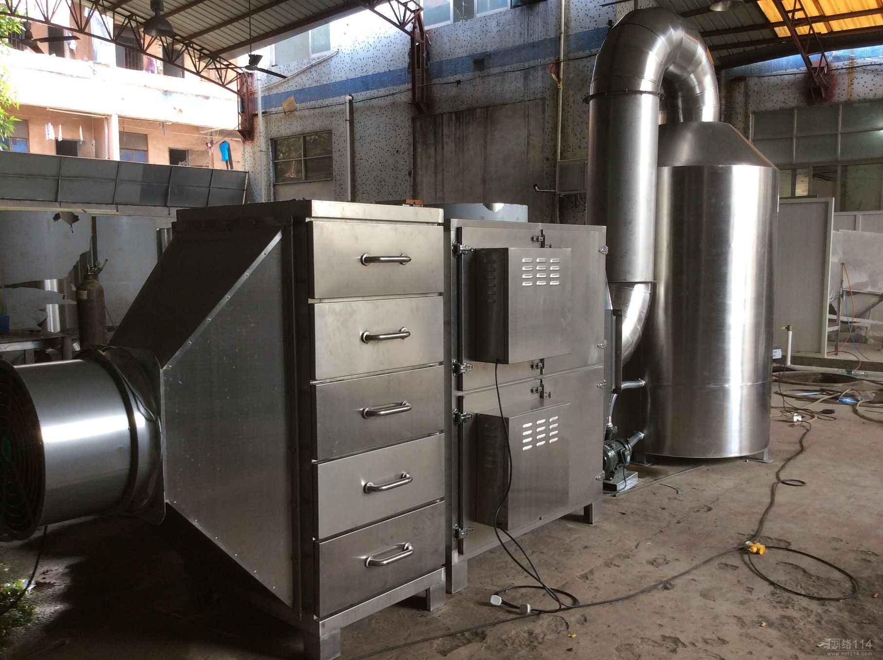光離復(fù)合催化處理技術(shù)是一種專門去除有毒有害氣體及惡臭氣體的一種裝置。是等離子分解廢氣凈化器+UV光解除臭廢氣凈化器兩種設(shè)備的完美結(jié)合,綜合采用了等離子廢氣凈化器和紫外光觸媒除臭廢氣凈化器兩種設(shè)備的優(yōu)點組合而成,利用等離子分解技術(shù)和UV紫外光解技術(shù)相結(jié)合,對廢氣和臭氣進行高效協(xié)同凈化處理!它具有高效率、運行成本低、設(shè)備占地面積小,自重輕、無任何機械動作,無噪音等特點,等離子光解一體機凈化設(shè)備凈化效率在95%以上。是目前市場上更佳的廢氣凈化設(shè)備。下面圖片就是我們光離復(fù)合廢氣處理設(shè)備