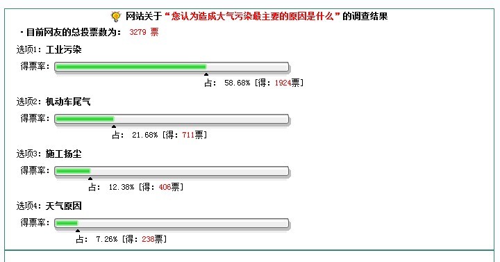 在這上個選項(xiàng)中,我公司本著想要看到真實(shí)、公正的調(diào)查結(jié)果,在進(jìn)行投票(工業(yè)污染)后才進(jìn)行結(jié)果查看,結(jié)果如圖: